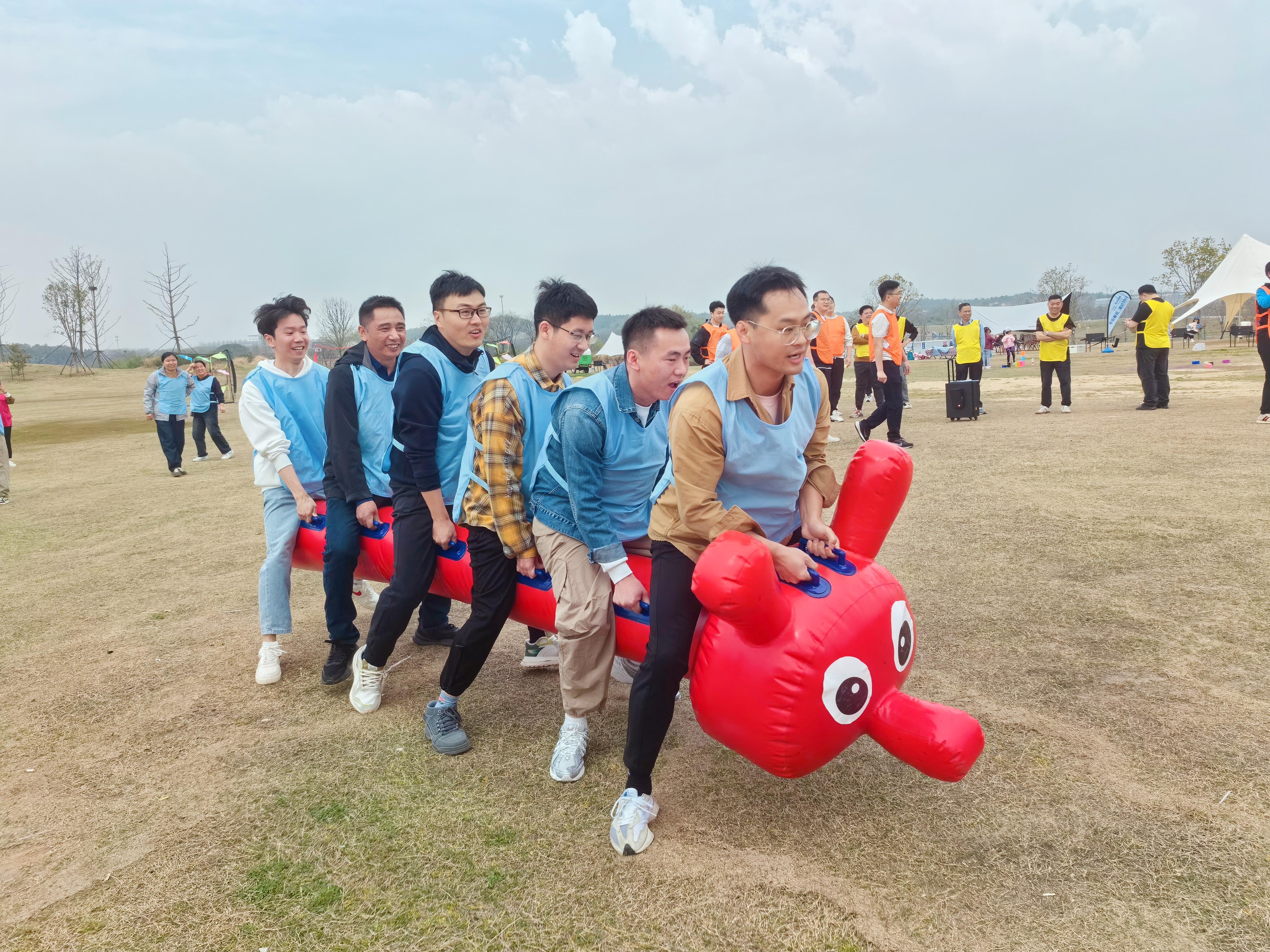 在愜意閑適的湖邊徒步熱身后,大家在寬闊平整的綠茵草地上正式開啟此次戶外團(tuán)建。活動(dòng)開始,大家分成紅、黃、橙、藍(lán)四色小組,各組隊(duì)員在組長的指揮和布陣下,通力合作,角逐壘方塊、連連看、拋飛盤等團(tuán)隊(duì)競賽的魁首。在這些充滿創(chuàng)意與趣味的活動(dòng)中,合作與競爭巧妙融合,同事之間的距離被悄然拉近;當(dāng)隊(duì)員不慎跌倒落后時(shí),大家相互鼓勵(lì),起身再戰(zhàn);當(dāng)團(tuán)隊(duì)頻頻得分領(lǐng)先時(shí),大家擊掌擁抱,歡呼雀躍,現(xiàn)場喝彩之聲此起彼伏,各隊(duì)成員密切配合,展現(xiàn)出高效一致的執(zhí)行力和協(xié)助配合的團(tuán)隊(duì)精神。
