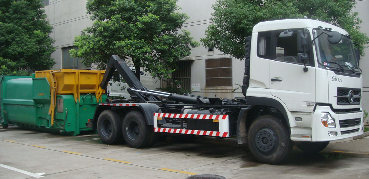 CGJ5250ZXXE5型車廂可卸式垃圾車是收集居民小區、街道等處的城市生活垃圾并將其送往垃圾中轉站或將垃圾中轉站箱體運至垃圾處理場的專用車輛。